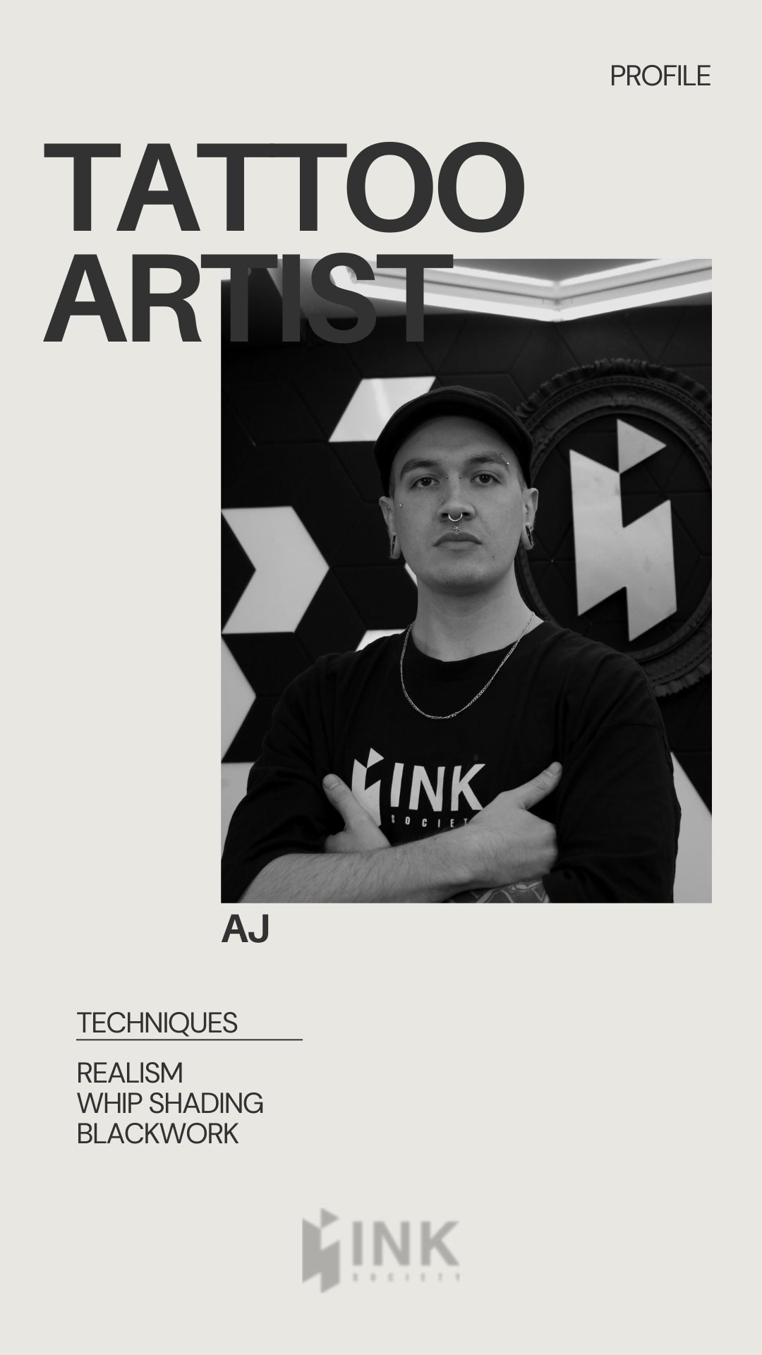A specialist in black & grey realism, he is recognized for transforming images into striking and timeless art on skin.